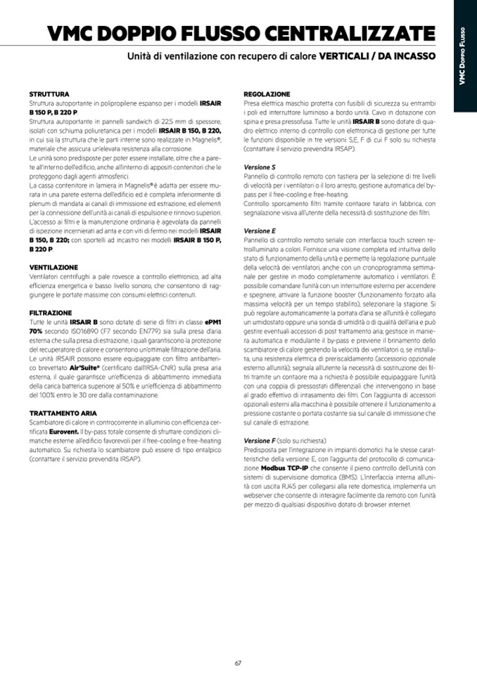 spina e presa pressofusa. Tutte le unità IRSAIR B sono dotate di qua-