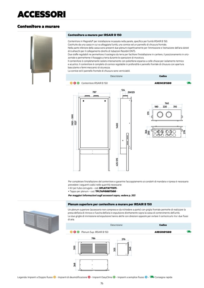 Plenum superiore per contenitore a murare per IRSAIR B 150