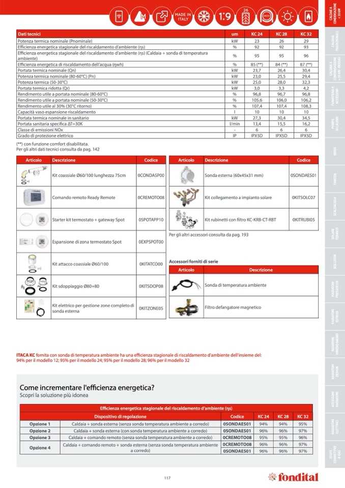 ITACA KC fornita con sonda di temperatura ambiente ha una efficienza stagionale di riscaldamento d'ambiente dell'insieme del: