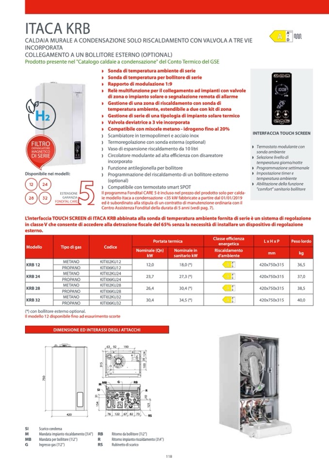 ie modello Itaca a condensazione <35 kW fabbricate a partire dal 01/01/2019