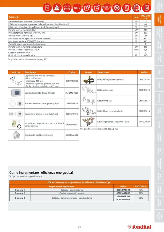 Rendimento utile al 30% (47°C ritorno)