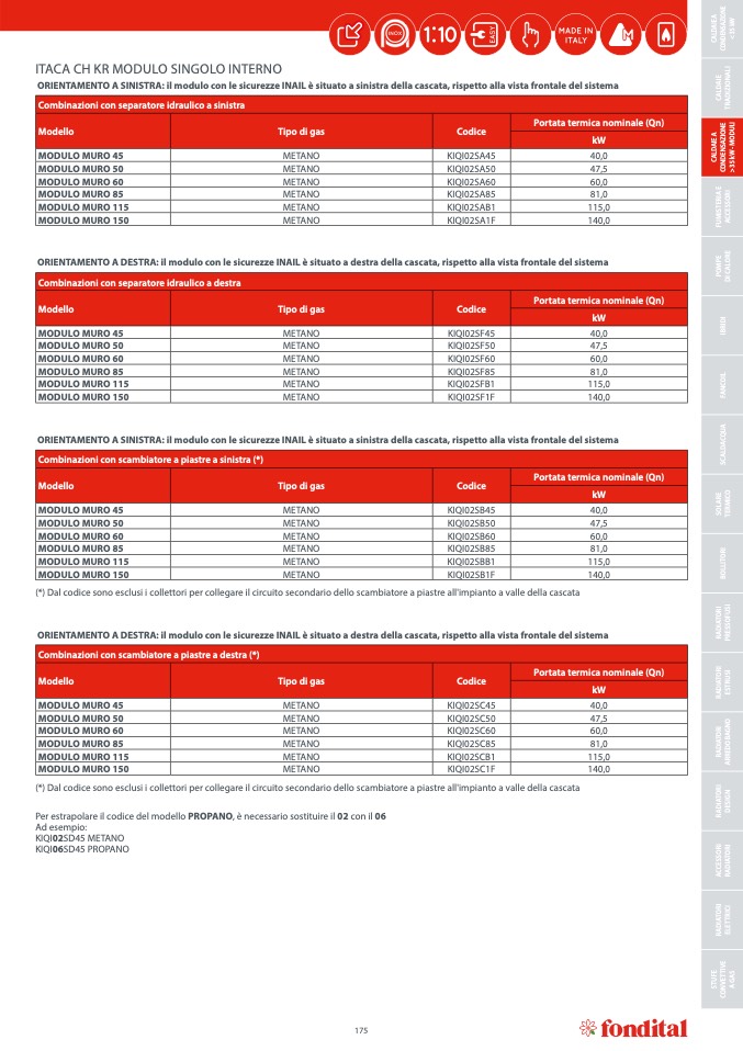 Per estrapolare il codice del modello PROPANO, è necessario sostituire il 02 con il 06