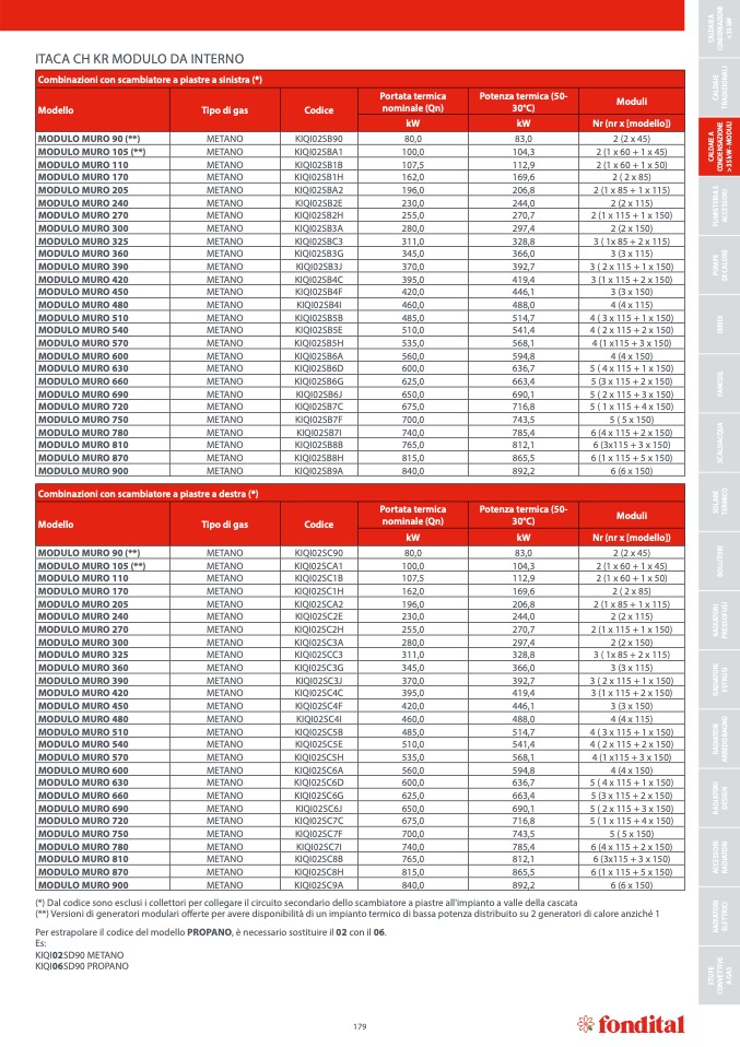 Combinazioni con scambiatore a piastre a sinistra (*)