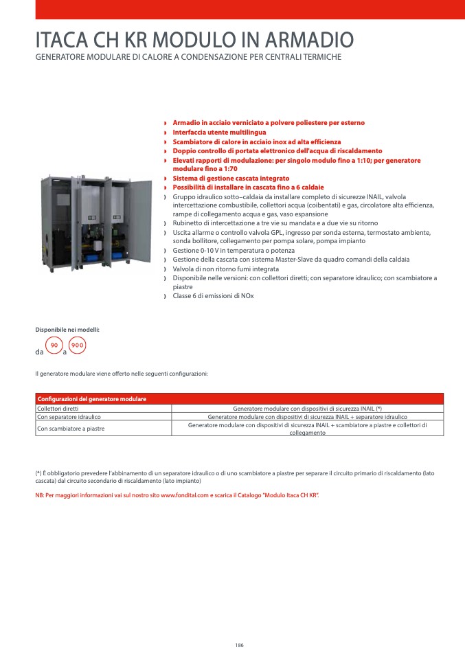NB: Per maggiori informazioni vai sul nostro sito www.fondital.com e scarica il Catalogo ”Modulo Itaca CH KR”.