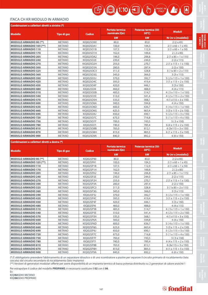 (**) Versioni di generatori modulari offerte per avere disponibilit