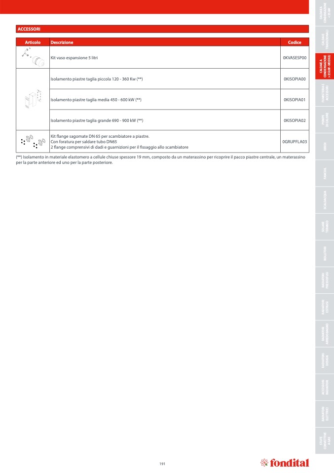 Isolamento piastre taglia piccola 120 - 360 Kw (**)