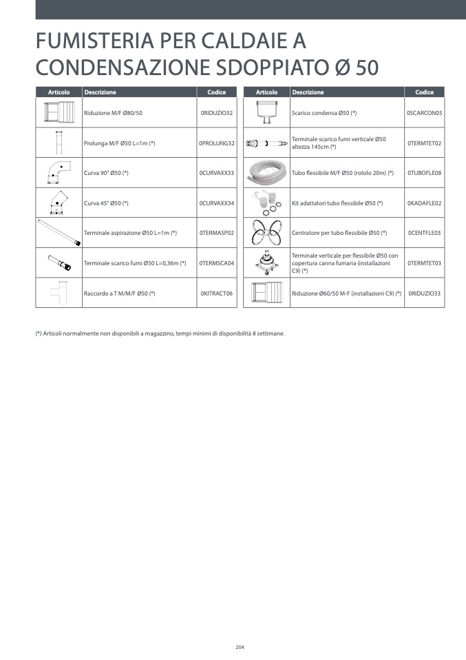 (*) Articoli normalmente non disponibili a magazzino, tempi minimi di disponibilit