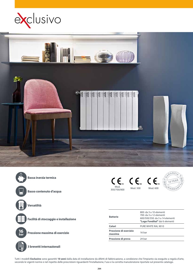 Tutti i modelli Exclusivo sono garantiti 10 anni dalla data di installazione da difetti di fabbricazione, a condizione che l’impianto sia eseguito a regola d’arte,