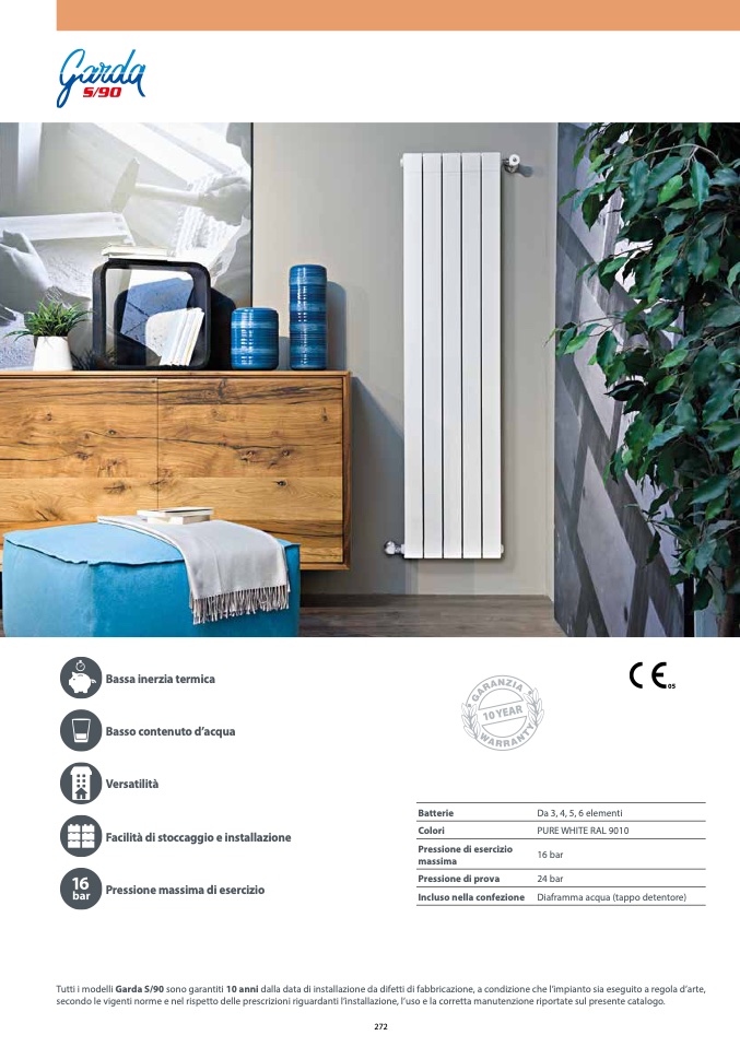 Tutti i modelli Garda S/90 sono garantiti 10 anni dalla data di installazione da difetti di fabbricazione, a condizione che l’impianto sia eseguito a regola d’arte,