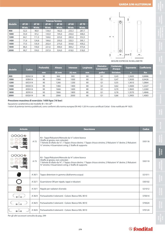 I valori di potenza termica pubblicati, sono conformi alla norma europea EN 442-1:2014 e sono certi