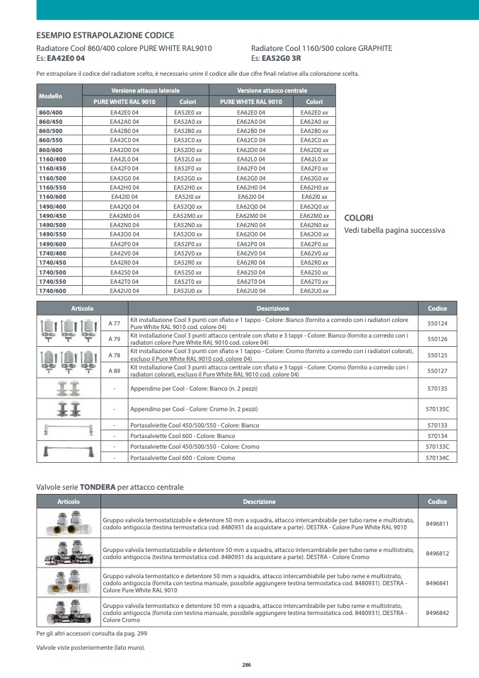 radiatori colorati, escluso il Pure White RAL 9010 cod. colore 04)