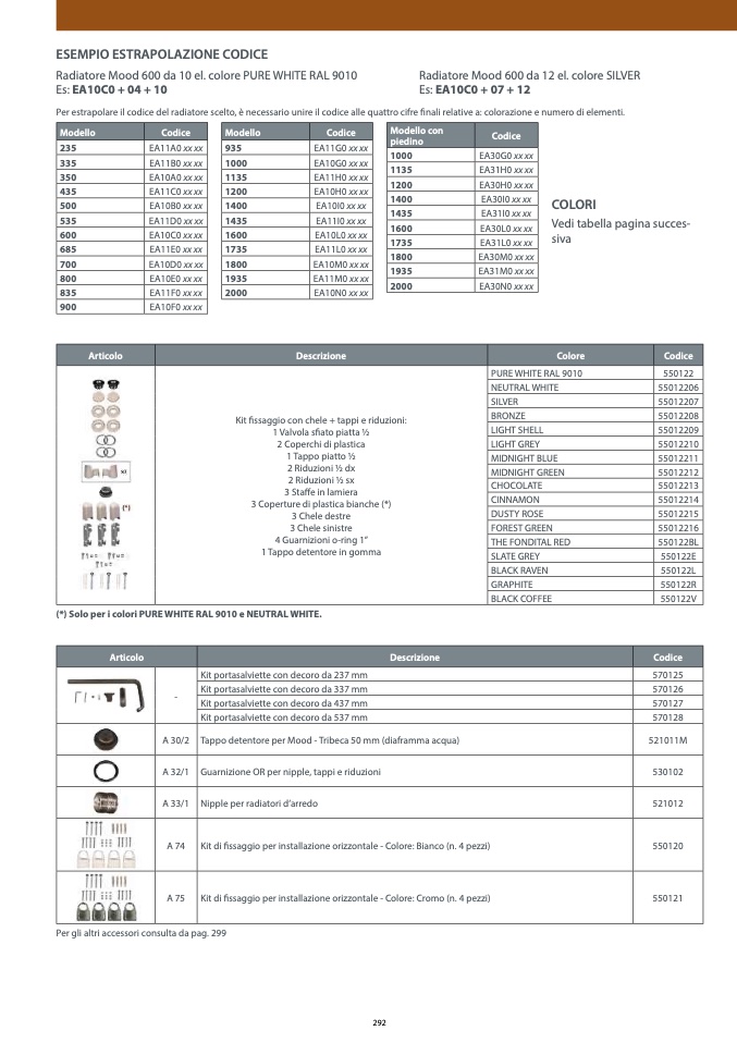 è necessario unire il codice alle quattro cifre finali relative a: colorazione e numero di elementi.