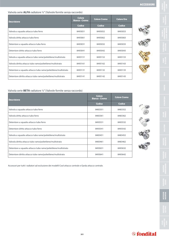 Accessori per tutti i radiatori ad esclusione dei modelli Cool attacco centrale e Garda attacco centrale.