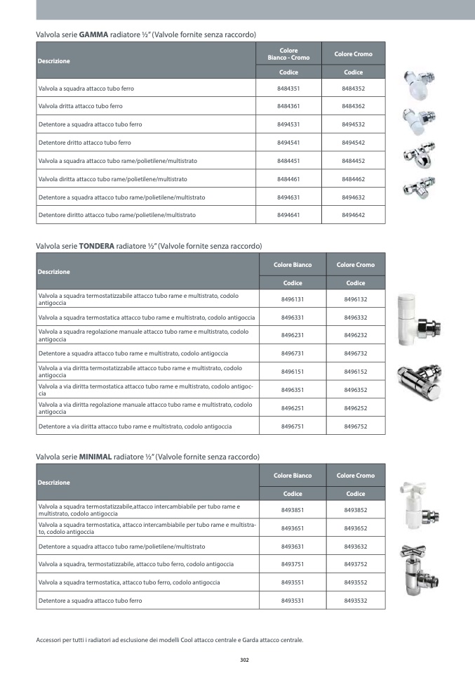 Accessori per tutti i radiatori ad esclusione dei modelli Cool attacco centrale e Garda attacco centrale.