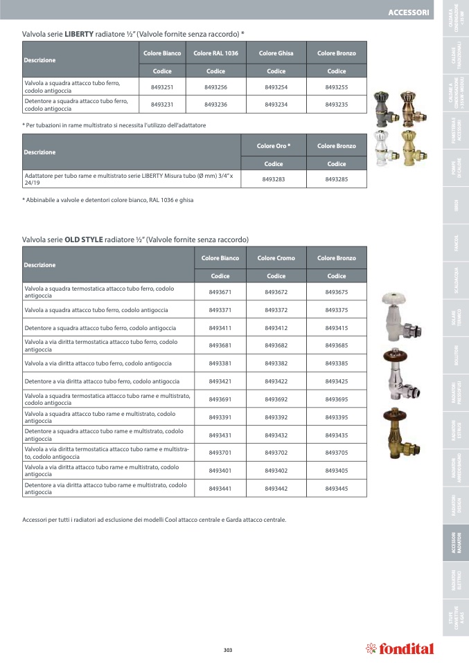* Abbinabile a valvole e detentori colore bianco, RAL 1036 e ghisa