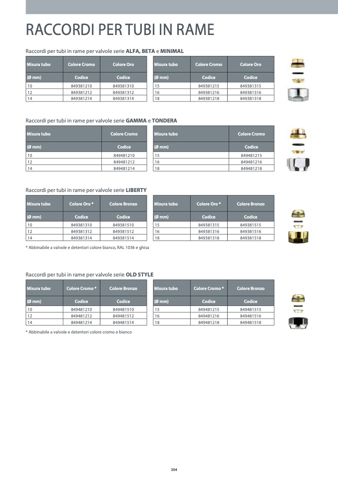 * Abbinabile a valvole e detentori colore bianco, RAL 1036 e ghisa