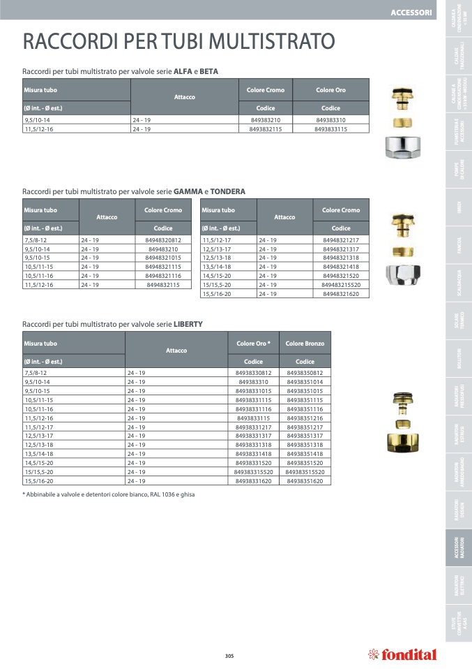 * Abbinabile a valvole e detentori colore bianco, RAL 1036 e ghisa
