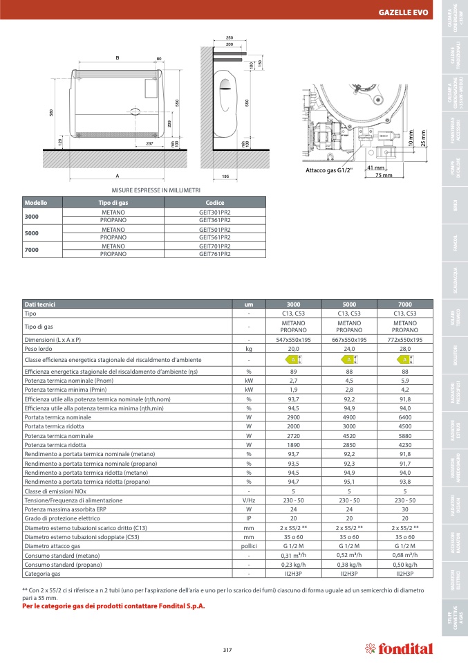 Per le categorie gas dei prodotti contattare Fondital S.p.A.