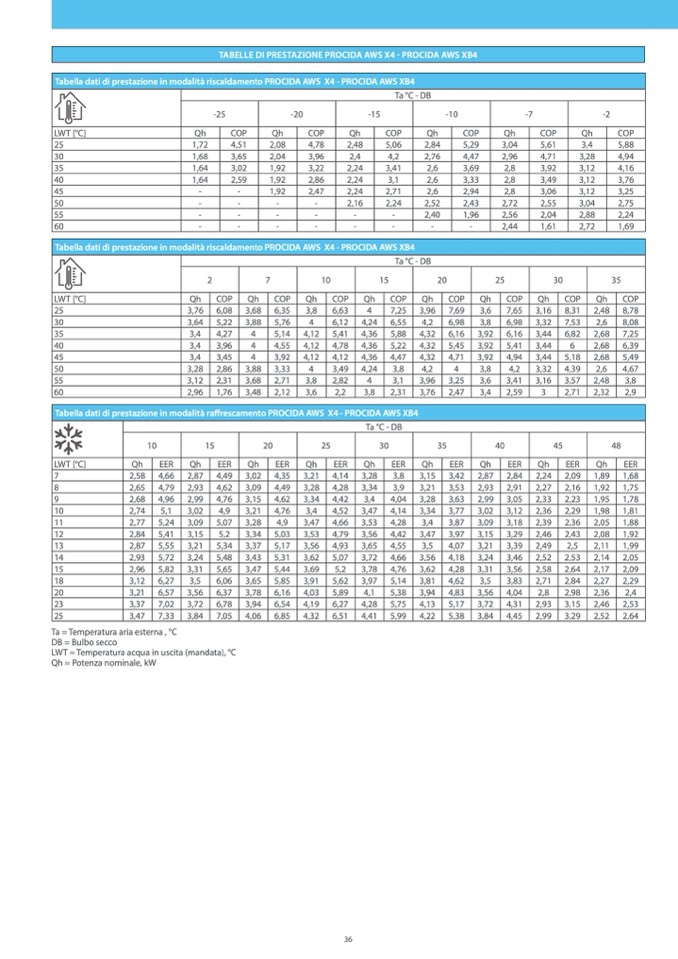 TABELLE DI PRESTAZIONE PROCIDA AWS X4 - PROCIDA AWS XB4