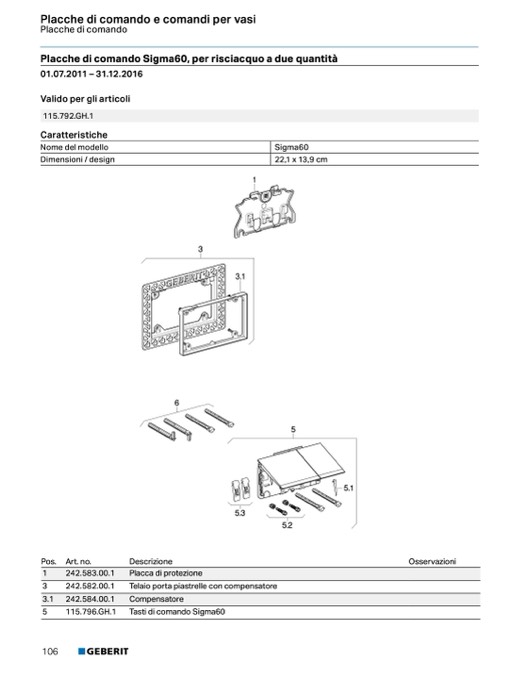 Placche di comando Sigma60, per risciacquo a due quantità