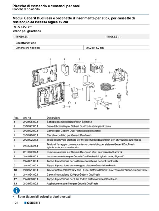 GuCaarnvioziaolinmeentazione 12 V per Geberit DuoFresh