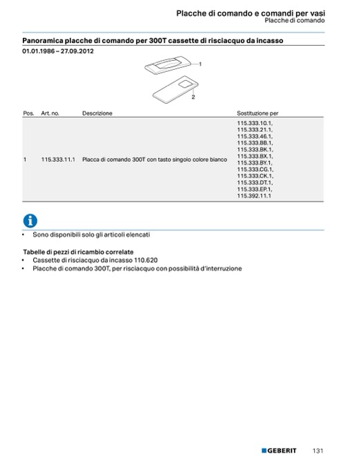 Placche di comando 300T, per risciacquo con possibilit