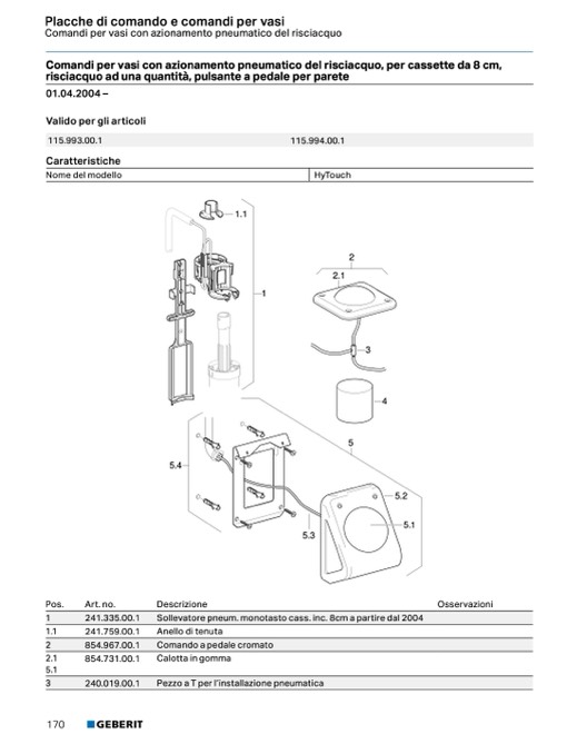 Sollevatore pneum. monotasto cass. inc. 8cm a partire dal 2004