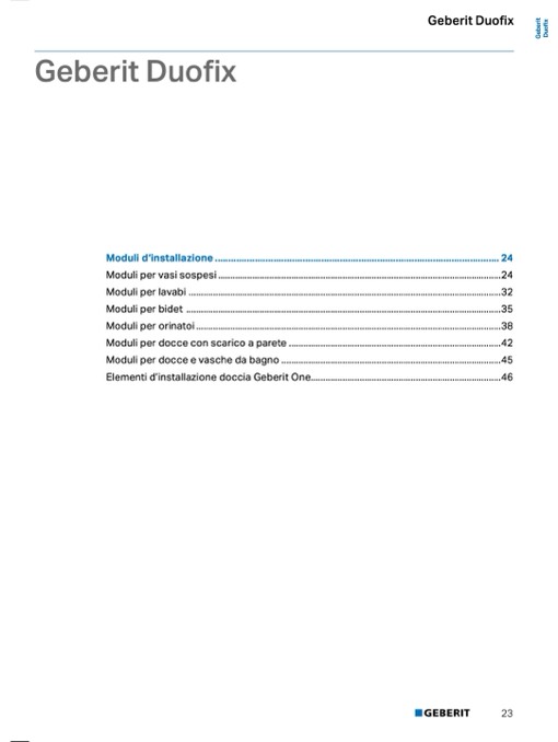 Elementi d’installazione doccia Geberit One..............................................................................46