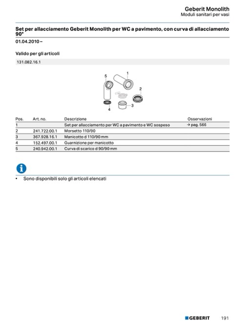 Set per allacciamento Geberit Monolith per WC a pavimento, con curva di allacciamento