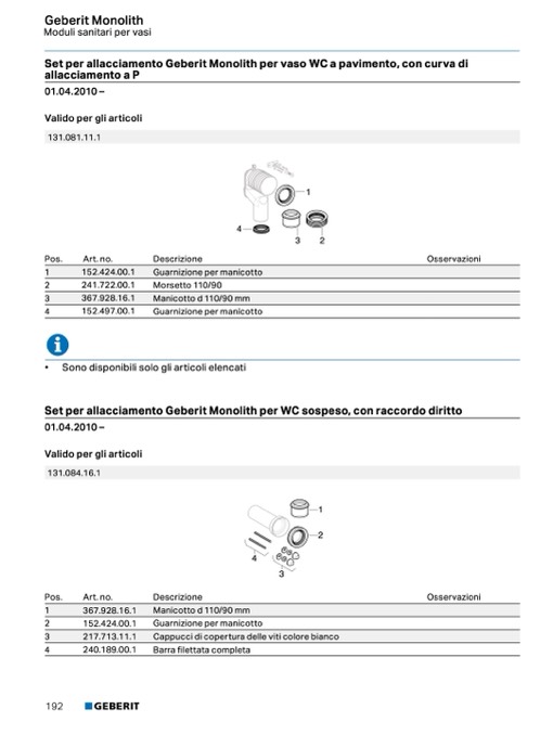 Set per allacciamento Geberit Monolith per vaso WC a pavimento, con curva di