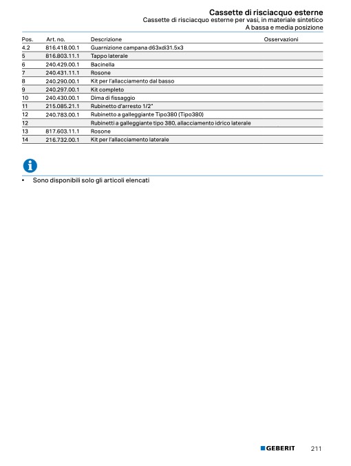 • Comandi WC HyTouch, manuali / pneumatici, risciacquo ad una quantità → pag. 155