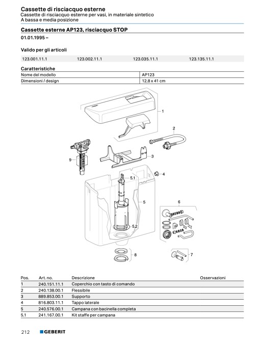 Cassette esterne AP123, risciacquo STOP