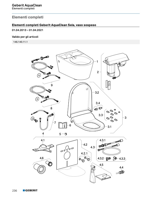Elementi completi Geberit AquaClean Sela, WC sospeso