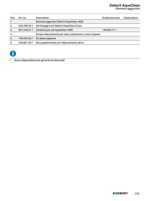 Elementi aggiuntivi Geberit AquaClean 4000