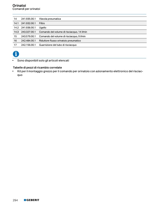 • Comandi WC HyTouch, manuali / pneumatici, risciacquo ad una quantità → pag. 155
