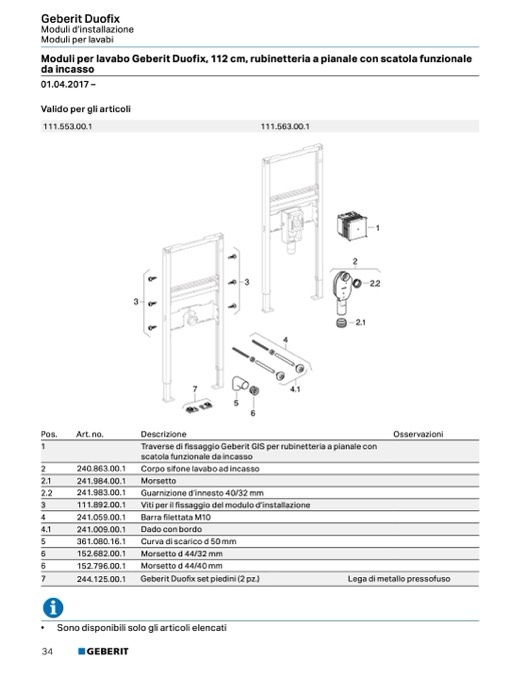 Moduli per lavabo Geberit Duofix, 112 cm, rubinetteria a pianale con scatola