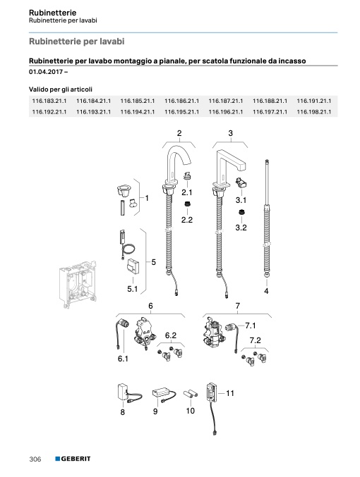 Rubinetterie per lavabo montaggio a pianale, per scatola funzionale da incasso