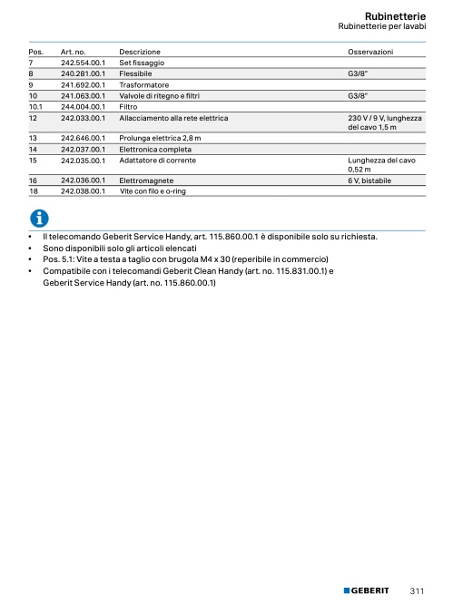 Il telecomando Geberit Service Handy, art. 115.860.00.1 è disponibile solo su richiesta.
