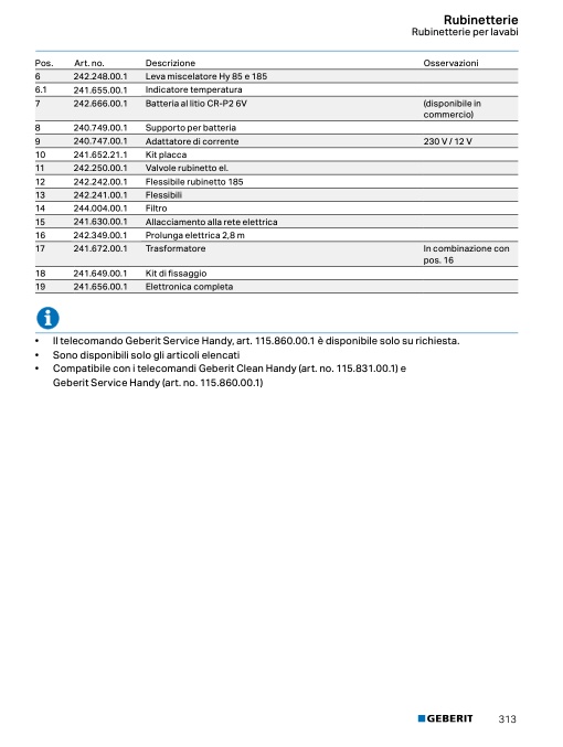 • Compatibile con i telecomandi Geberit Clean Handy (art. no. 115.831.00.1) e