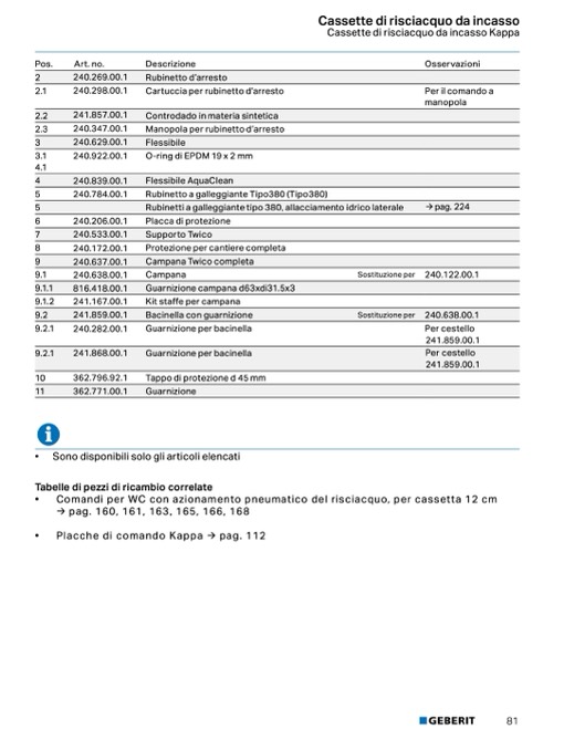 Comandi per WC con azionamento pneumatico del risciacquo, per cassetta 12 cm