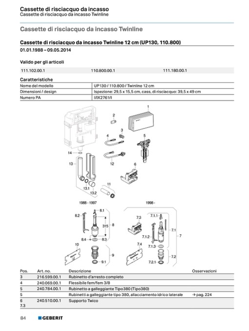 Cassette di risciacquo da incasso Twinline 12 cm (UP130, 110.800)