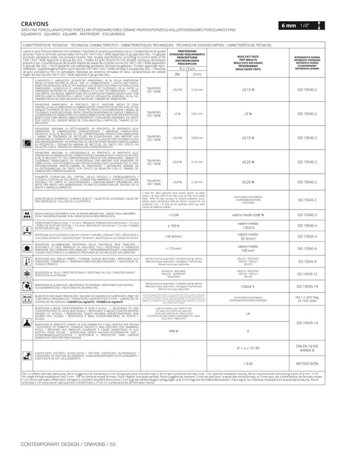 és à sec. Caractéristiques de qualité d’aprés les essais de contrôle norme EN 14411-ISO 13006 Appendic
