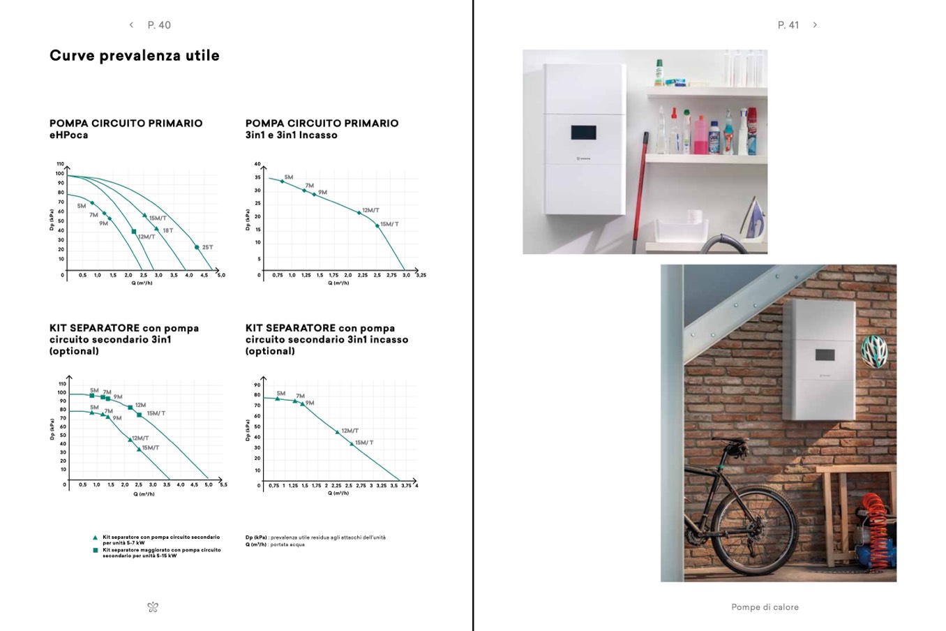 Dp (kPa) : prevalenza utile residua agli attacchi dell’unità