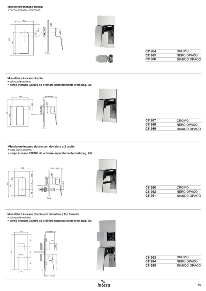 • corpo incasso 032068 da ordinare separatamente (vedi pag. 28)