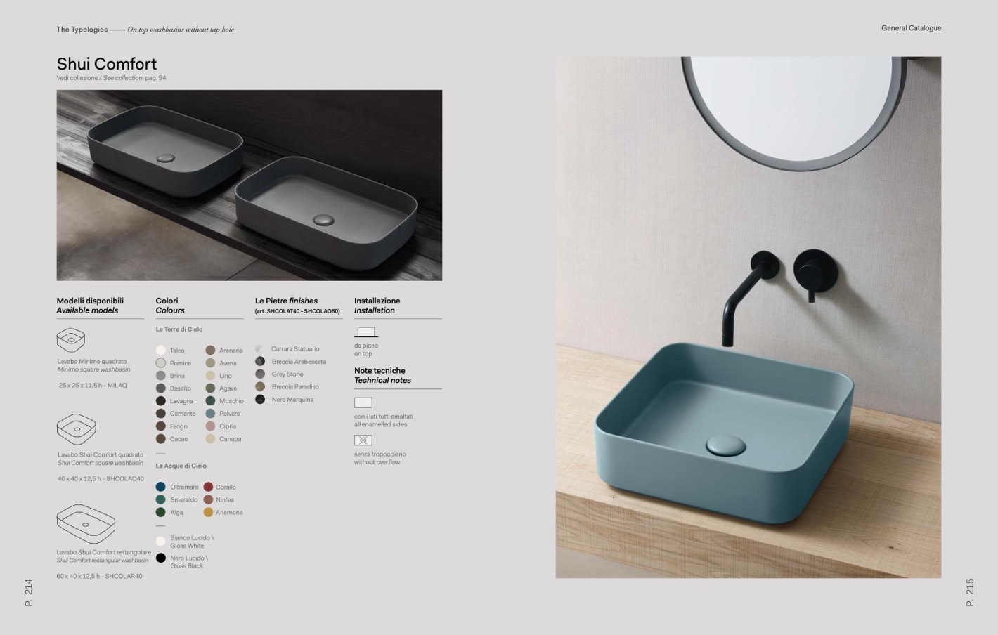 The Typologies ––––– On top washbasins without tap hole