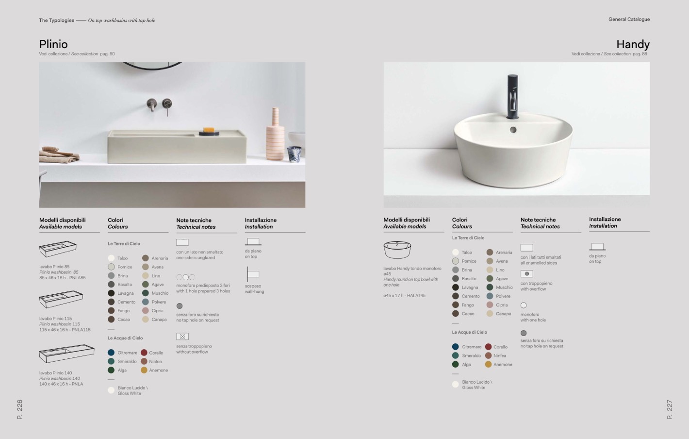 The Typologies ––––– On top washbasins with tap hole