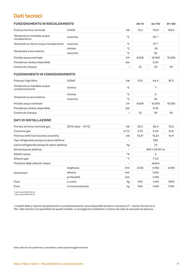 I modelli Robur Hybrid riscaldamento e condizionamento sono disponibili anche in versione CT