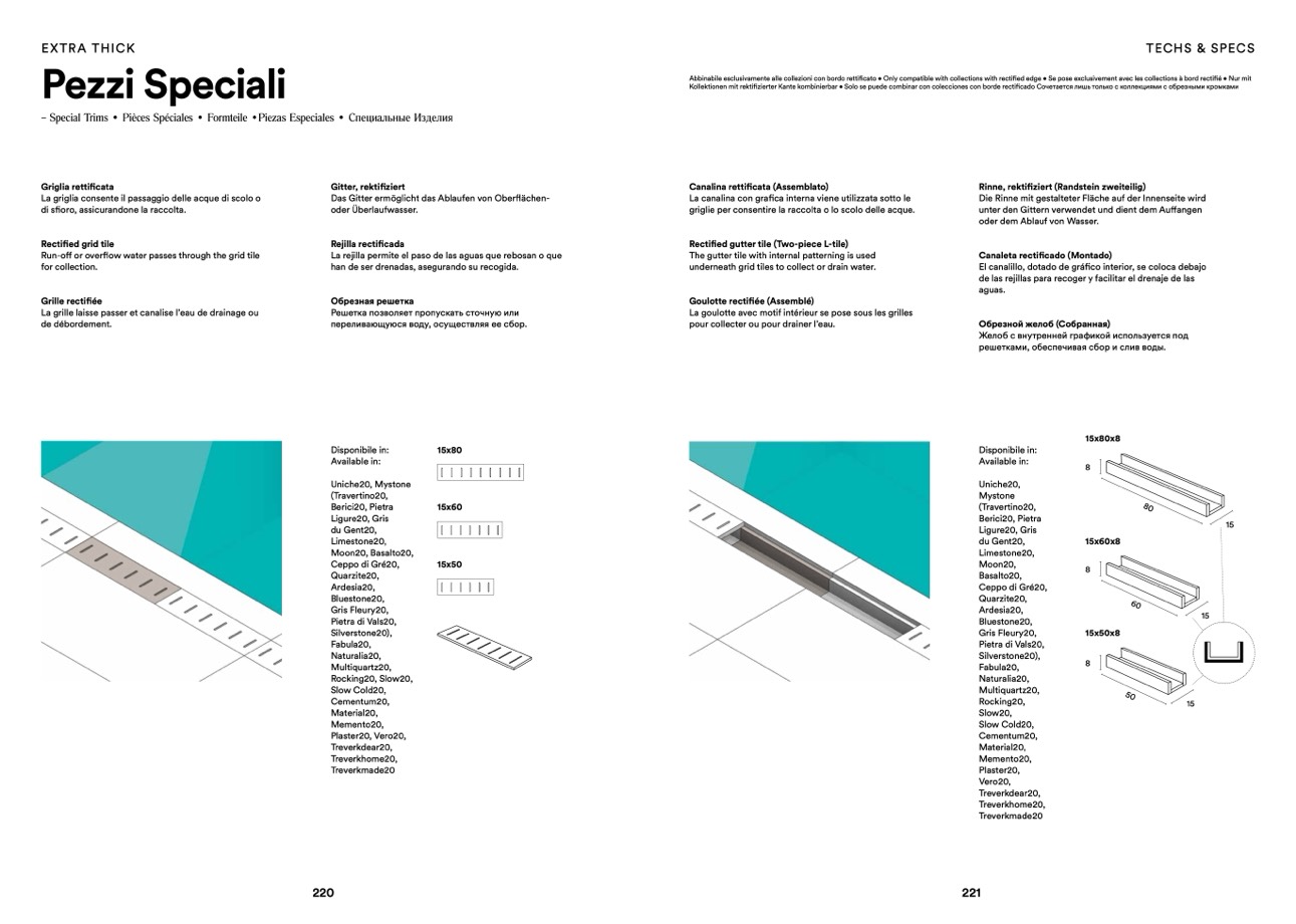 Abbinabile esclusivamente alle collezioni con bordo rettificato • Only compatible with collections with rectified edge • Se pose exclusivement avec les collections à bord recti