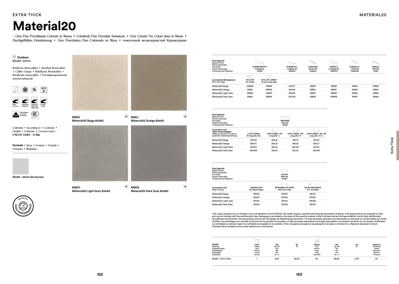 and can be matched with the rectified plain tiles. Packaging is calculated on the basis of the quantity ordered. • Alle Formteile sind auf Anfrage erhältlich und mit den rektifizierten