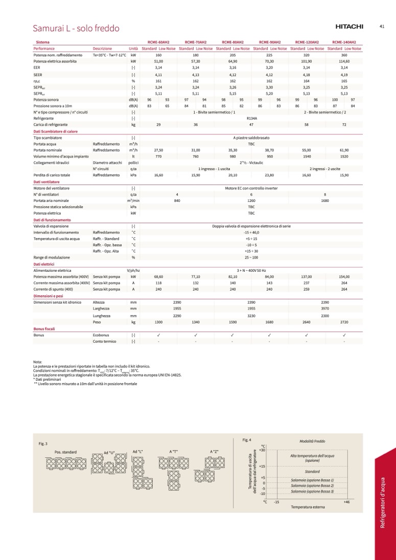 La potenza e le prestazioni riportate in tabella non includo il kit idronico.